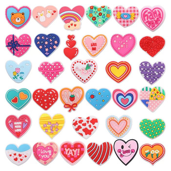 Bán buôn tùy chỉnh PVC tình yêu trái tim quyến rũ giày dễ thương Valentine trái tim hoa cao su giày trang trí DIY làm tắc nghẽn Giày ren quyến rũ